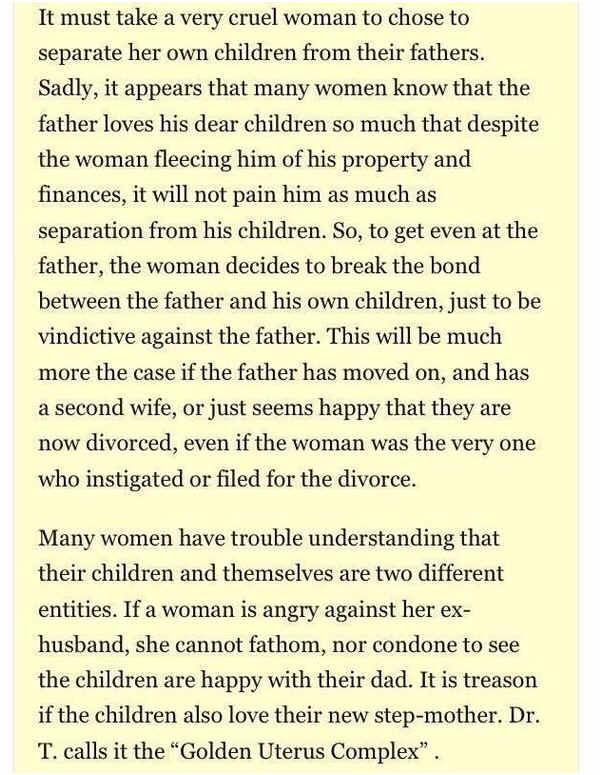 - typically by "mothers" using the tactic of parental alienation and